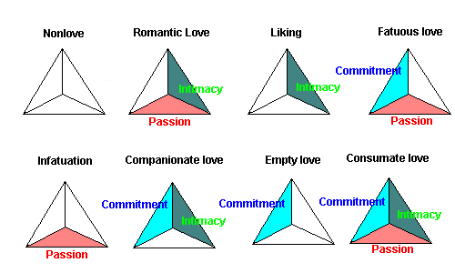 Sternbergmengembangkan Teori Segitiga Cinta. Namun mengapa ada konsepsi segitiga dalam sebuah cinta. Contohnya pada hubungan perkenalan atau hubungan dengan orang-orang biasa casual interaction.